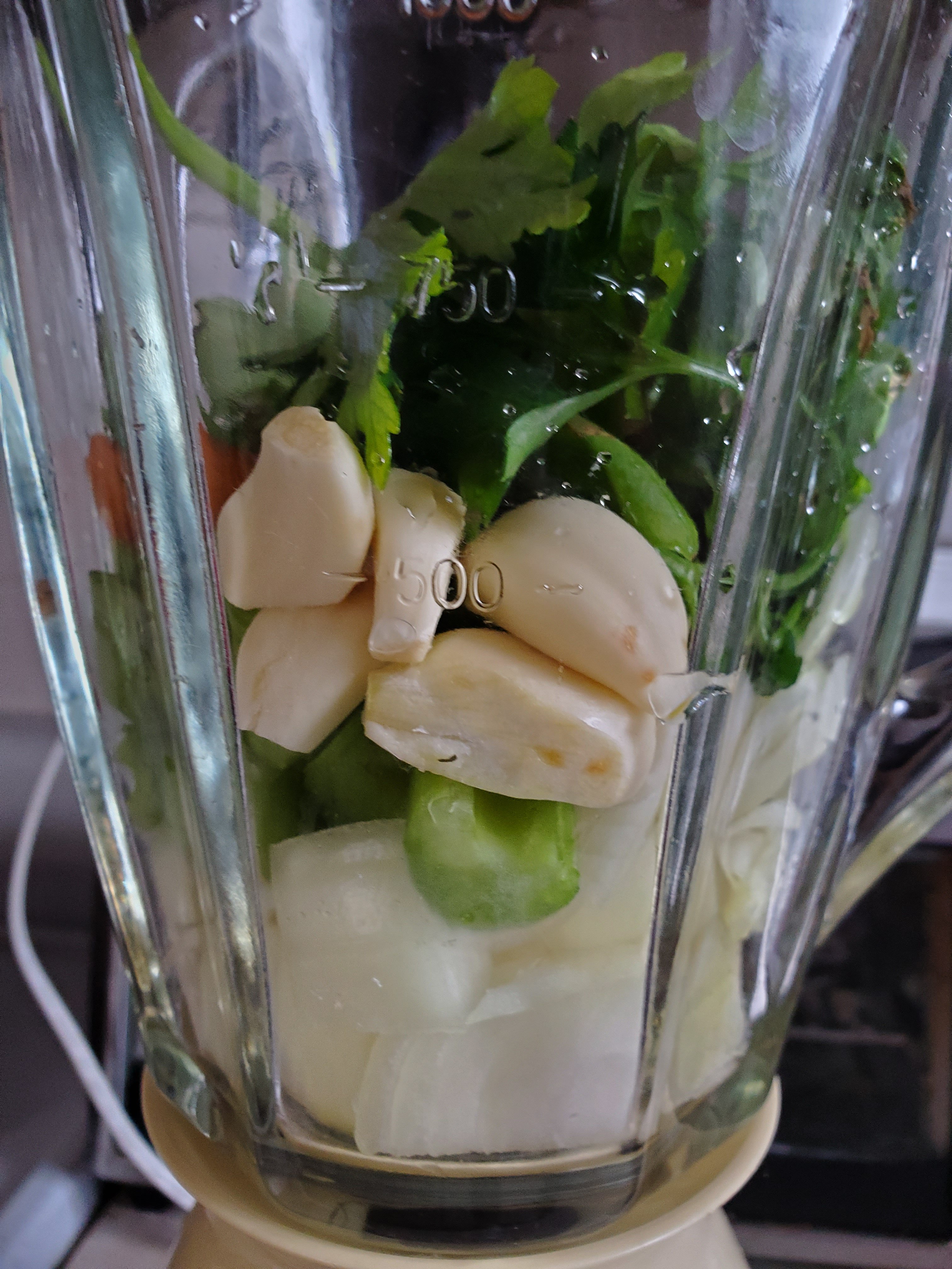 Put pieces of meat in a large pot with the bay leaf, salt and white pepper. Place all the other spices in a blender with some water and blend until completely purƩed. Add the blended spices to the pot of meat with about 7 to 8 cups of water. Bring to a boil with the lid on.